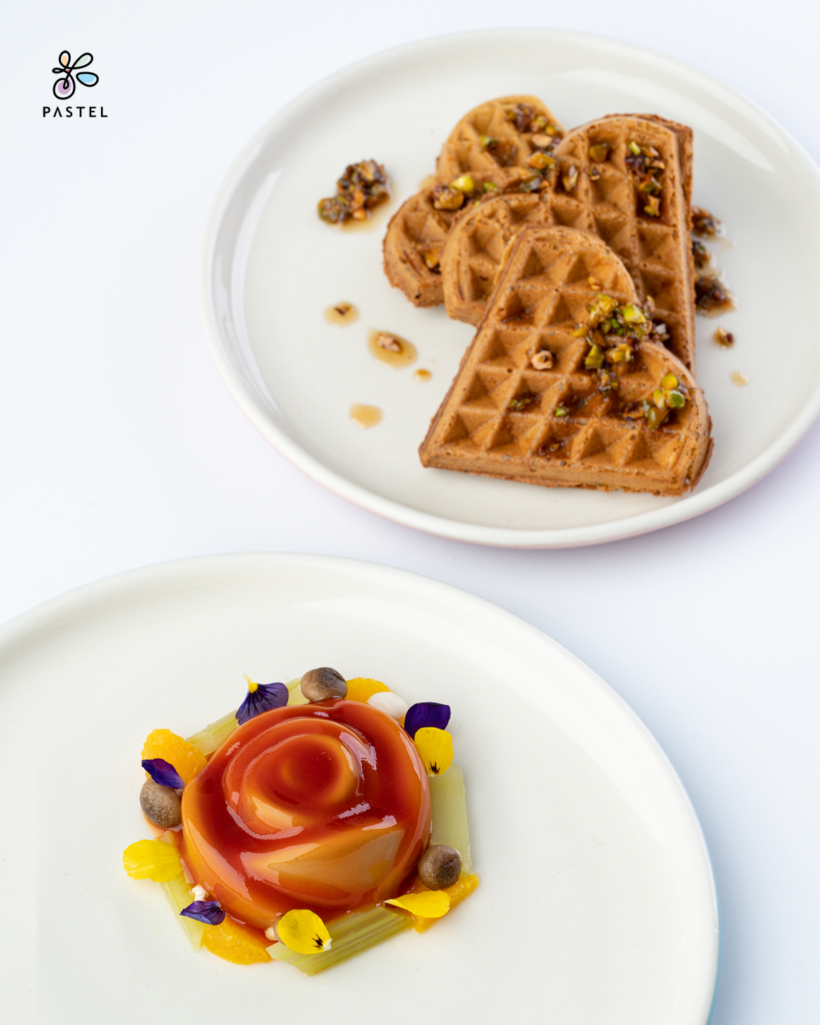 De la celebrul Beef Wellington, pus în valoare de gustul ciupercilor de pădure recoltate din regiune și servit cu un sos catifelat de trufe, la Parfait-ul de foie gras cu chutney de portocală roșie și salată apio, acompaniat de vafe cu Matcha, și până la surprinzătorul desert asamblat din texturi și arome de ciocolată, fructul pasiunii și ulei de mentă, meniul Restaurantului Pastel este o invitație extrem de convingătoare la festin.