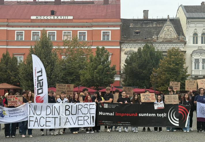 Studenții de la universitățile din Cluj-Napoca s-au adunat în fața Prefecturii pentru a protesta față de măsurile de austeritate adoptate de Guvern în domeniul educației. Principalele nemulțumiri ale studenților sunt legate de reducerea fondului destinat burselor din învățământul superior dar și modificarea criteriilor de acordare a burselor universitare.