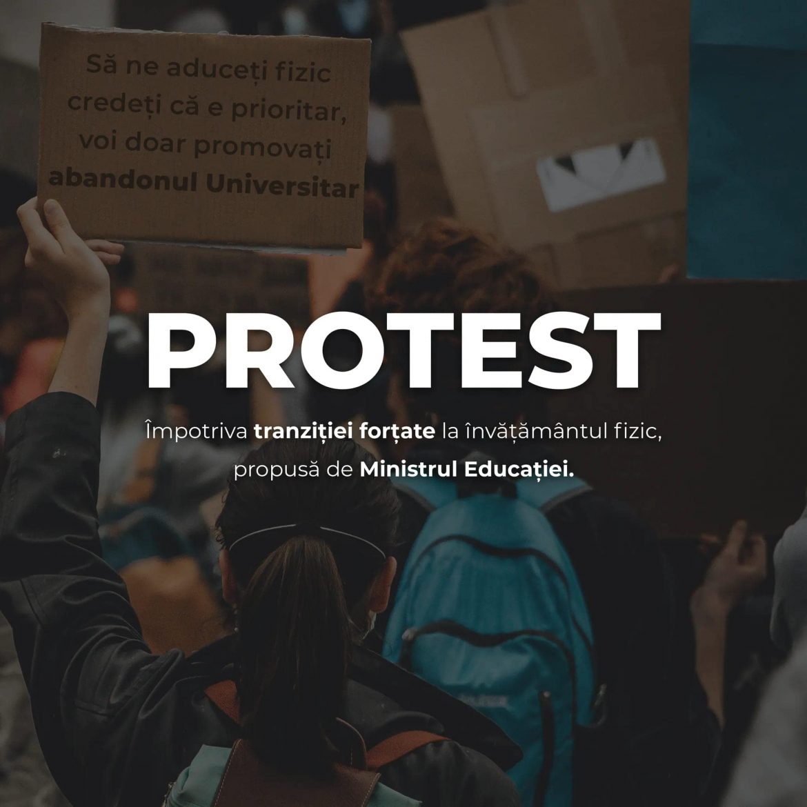 Aceștia au comunicat de asemenea că astăzi va avea loc un protest menit să dezavueze decizia Ministerului Educației de a le impune studenților să continue restul semestrului în format fizic.