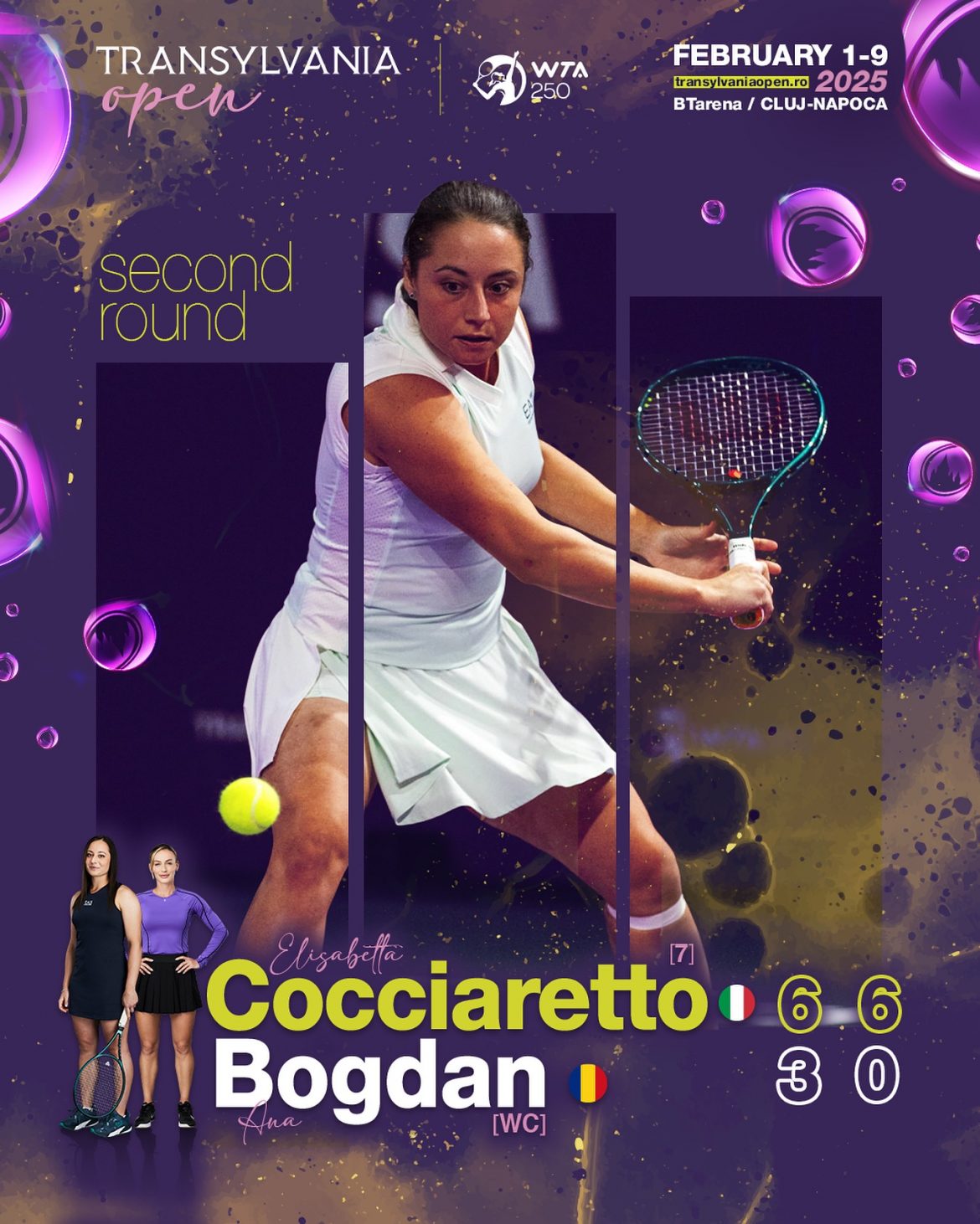 Meciurile din turul al doilea al Transylvania Open WTA 250 au adus momente spectaculoase, dar și puțină tristețe pentru fanii tenisului din România. Ana Bogdan a fost învinsă de italianca Elisabetta Cocciaretto, scor 6-3, 6-0, într-un meci care a marcat finalul parcursului româncelor pe tabloul de simplu. Cocciaretto, favorita numărul 7 a turneului, a dominat partida cu un joc agresiv și precis, avansând astfel în sferturile de finală.