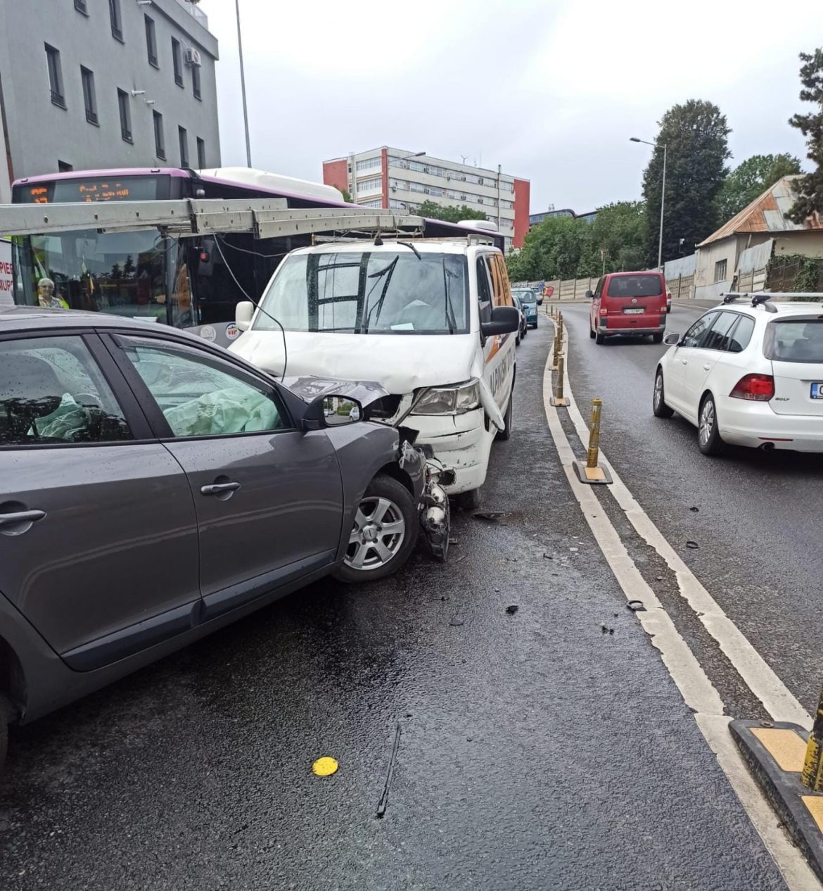 „La fața locului au găsit o autoutilitară și două autoturisme avariate, iar ocupanții erau ieșiți din acestea. Doi tineri au fost consultați de către echipajele SMURD și SAJ, dislocate la locul accidentului, și au fost transportați la spital pentru investigații de specialitate. Aceștia prezentau, la prima evaluare, afecțiuni ușoare”, a transmis ISU Cluj.