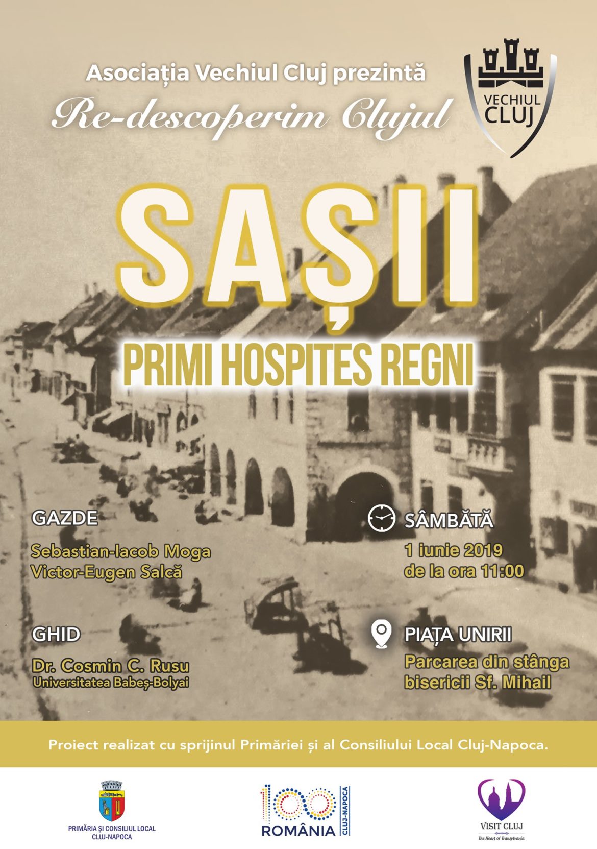 „Onorabili amici, reîncepem treaba cultural-turistică! În organizarea prietenilor noștri de la Asociația Vechiul Cluj și cu sprijinul financiar al Primăriei Cluj, vom organiza un nou ciclu al tururilor marca #ReDescoperimClujul. Tururile din acest an vor avea ca subiect COMUNITĂȚILE… COMUNITĂȚII Clujului. Dacă sunteți interesați și timpul vă permite, vă așteptăm cu drag la prima preumblare cultural-turistică, sâmbătă, 1 iunie, începând cu ora 11:00 (punct de întâlnire: latura de nord a Bisericii Parohiale Sf. Mihail). Prima comunitate despre care vom povesti este cea a sașilor”, este invitația pe care ghidul Cosmin C. Rusu a făcut-o pe rețelele de socializare.