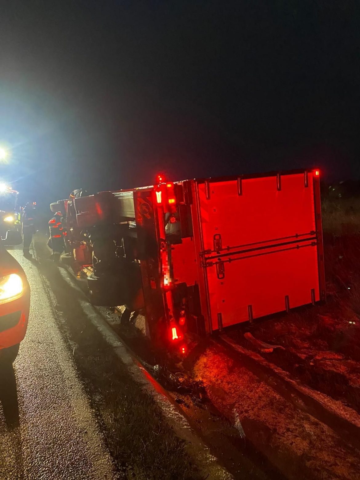 „În jurul orei 06.40, pe DN Varianta Ocolitoare Cluj – Est, km. 15+ 900m, sensul de mers Vâlcele – Apahida, s-a produs un eveniment rutier, în urma căruia un ansamblu de vehicule s-a răsturnat.