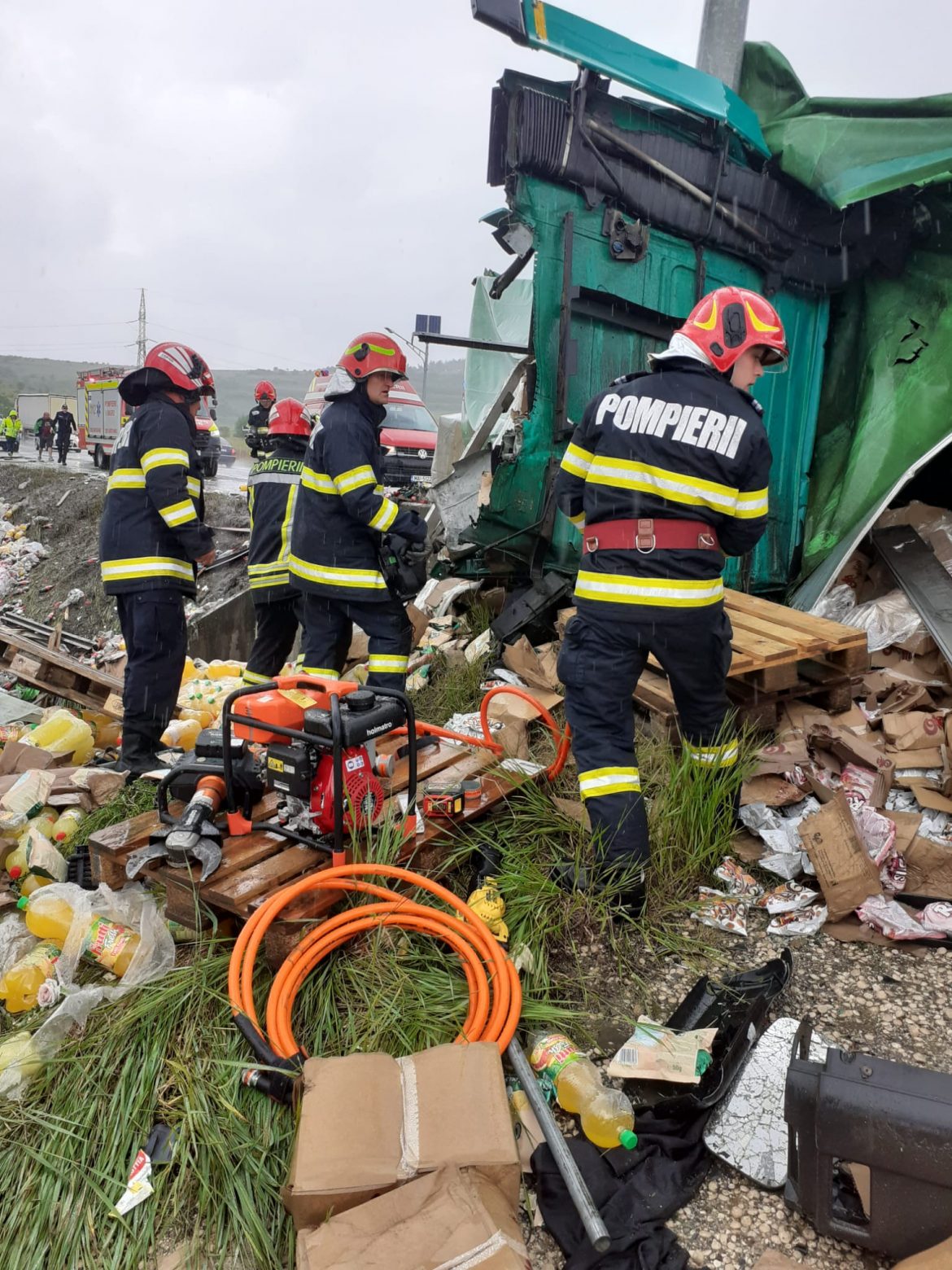Victima a fost extrasă și prezintă leziuni incompatibile cu viața. Bărbatul avea aproximativ 50 de ani, iar autotrenul răsturnat era încărcat cu sucuri”, au transmis și cei de la ISU Cluj.