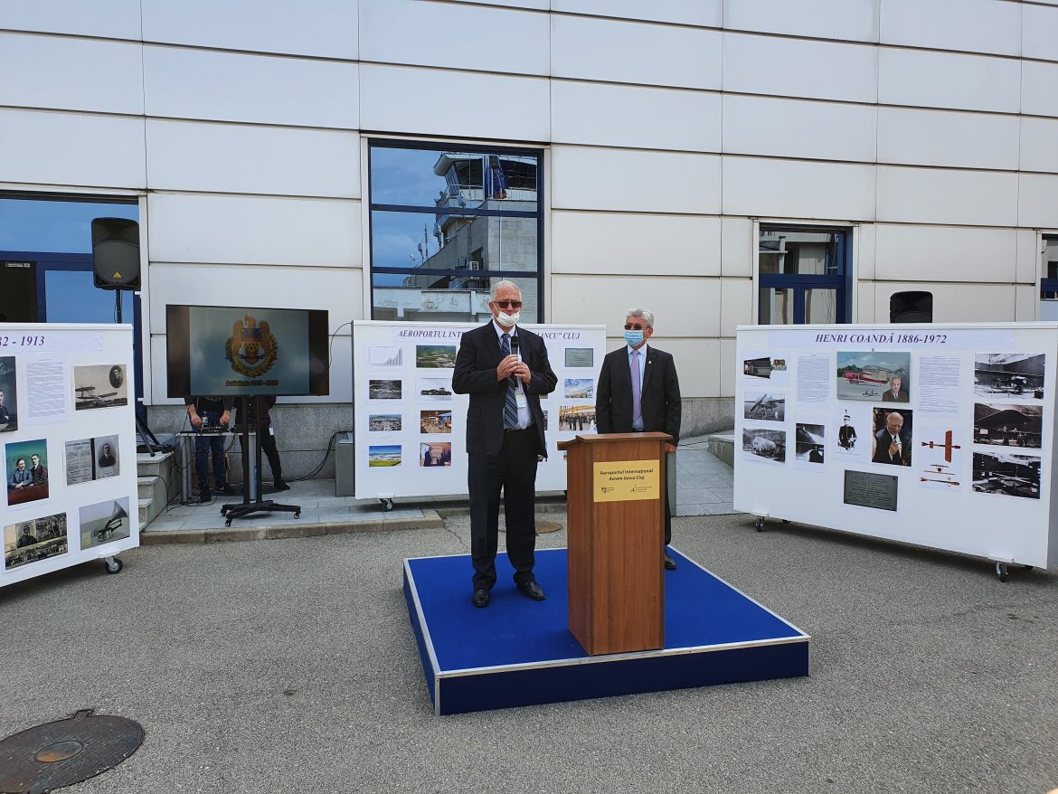 “Este o expoziție care reliefează meritele a doi pioneri ai aviației civile mondiale: Aurel Vlaicu și Henri Coandă. Avem și câteva fotografii din istoria aeroportului nostru care anul acesta împlinește 103 ani. Această expoziție scoate în evidență nu numai realizările și invențiile lor în domeniul aviației civile, ci și în alte domenii. Au fost doi ingineri de excepție. Henri Coandă a avut merite deosebite și în domeniul construcției. A avut peste 2.600 de invenții, dintre care a obținut peste 700 de brevete. Ele l-au recomandat ca fiind unul dintre cei mai mari savanți pe plan mondial. De asemenea, Aurel Vlaicu pe data de 17 iunie în anul 1910, a pilotat pentru prima dată un avion integral românesc. Din păcate a murit într-un tragic accident de aviație în același an”, a declarat directorul aeroportului Cluj-Napoca, David Ciceo.