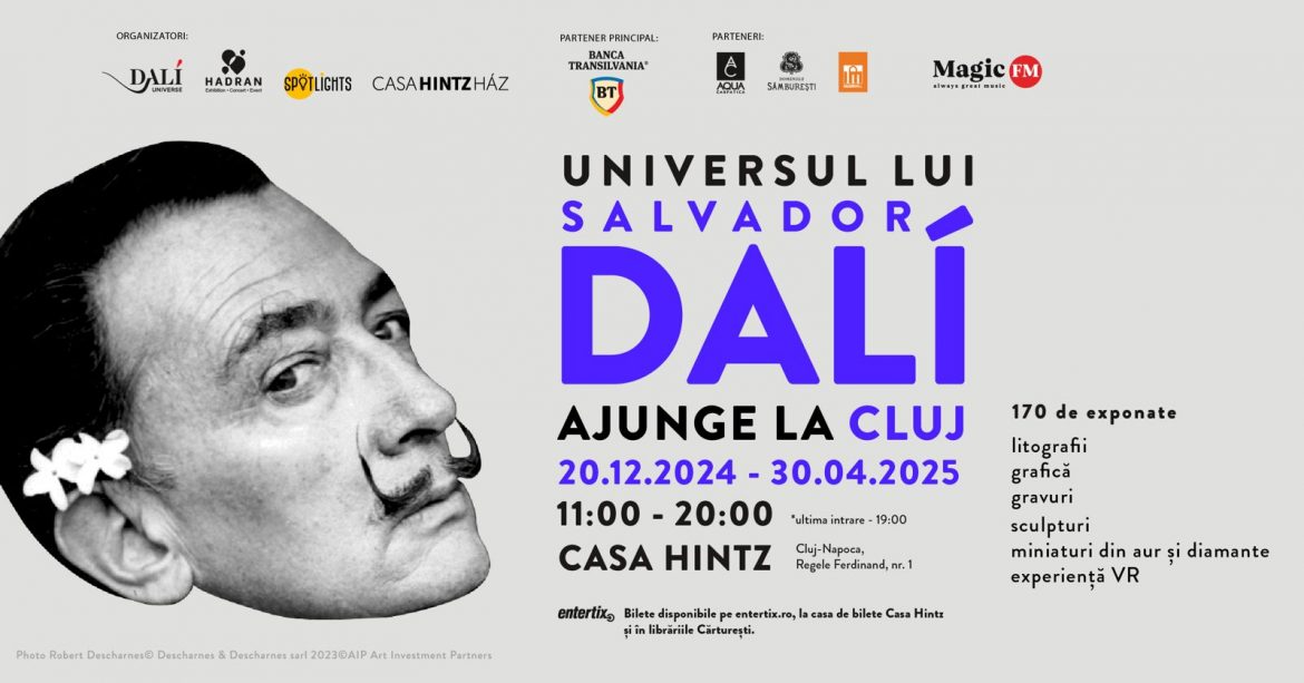 După succesul răsunător pe care l-a avut în București, unde a atras peste 100.000 de vizitatori, expoziția ”Universul lui Salvador Dalí” ajunge la Cluj-Napoca! Itinerată anterior în orașe precum Paris, Shanghai și Florența, această colecție extraordinară, compusă din peste 170 de exponate – litografii, grafică, gravuri, sculpturi, miniaturi din aur și diamante – aduce o incursiune fascinantă în lumea suprarealistă a maestrului Dalí, completată de o experiență unică de realitate virtuală. Găzduită de Casa Hintz, clădire istorică datând din 1573, expoziția marchează inaugurarea nivelurilor superioare recent restaurate ale acestei clădiri emblematice din Piața Unirii, în care a funcționat prima farmacie din oraș și care găzduiește astăzi, la parter, Muzeul Farmaciei. Publicul va putea explora această lume extraordinară între 20 decembrie 2024 și 30 aprilie 2025.