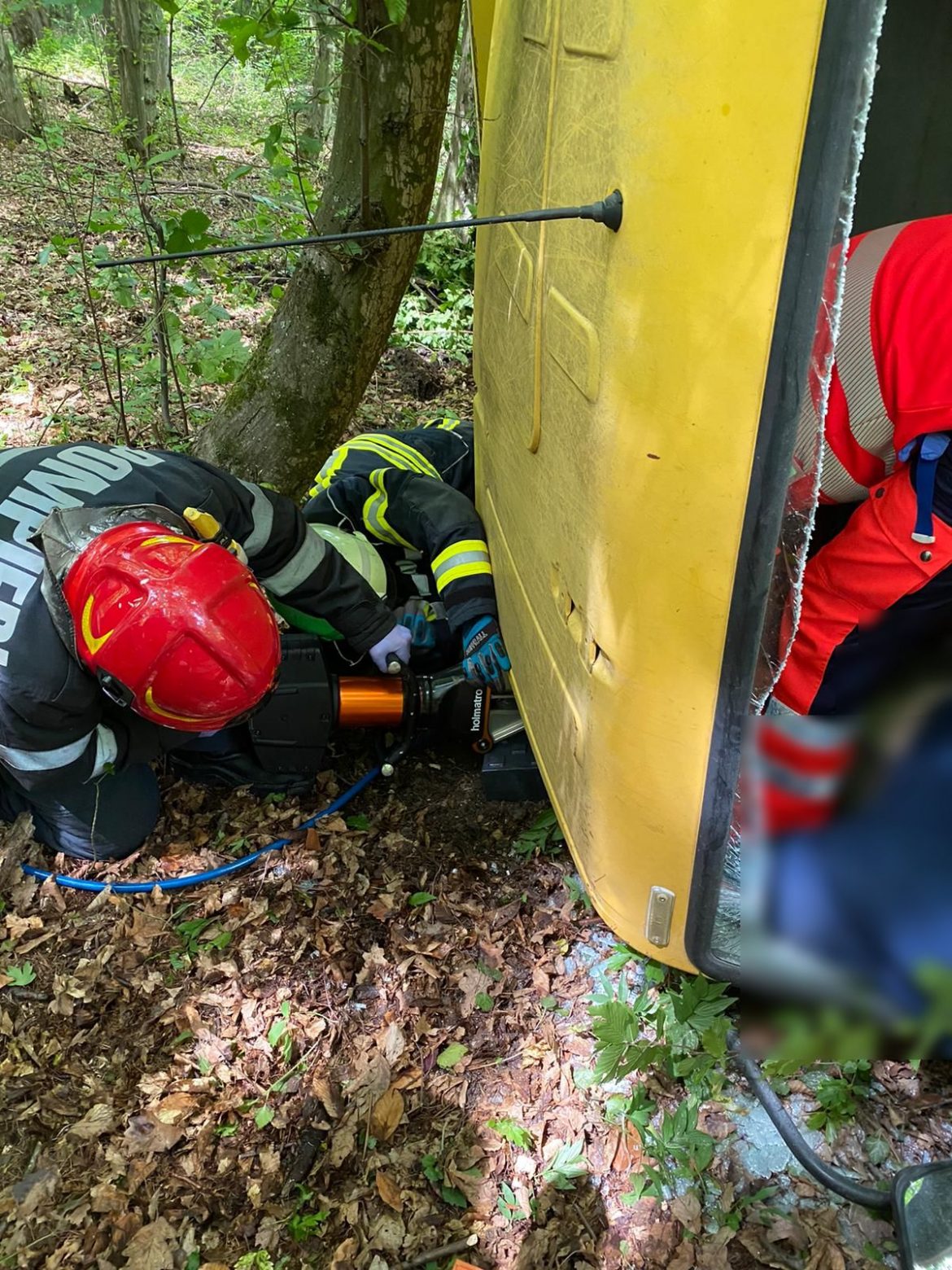 „Salvatorii au găsit camionul răsturnat în afara părții carosabile, la circa 30 de metri m față de aceasta, iar șoferul încarcerat și cu capul prins între caroseria camionului și sol.