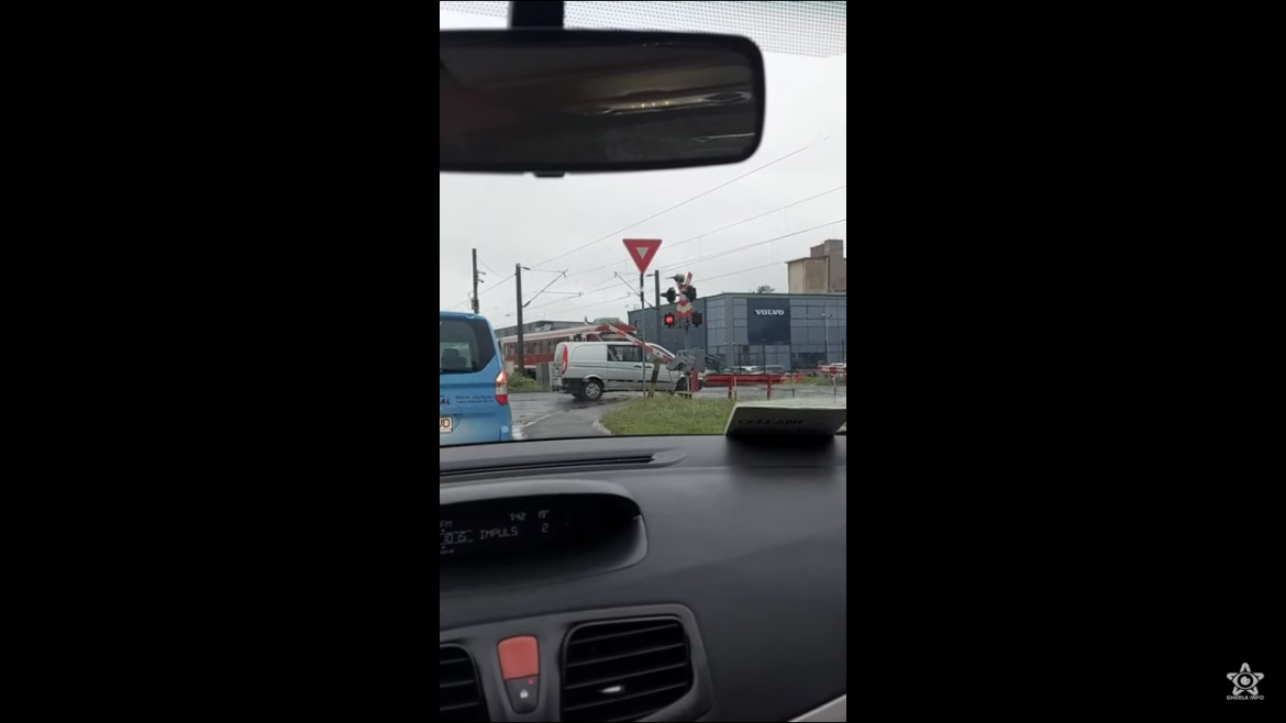 Din cauză că se grăbea, șoferul unei autoutilitare a vrut să evite timpii de așteptare la barieră și a continuat să se deplaseze, deși semnalele acustice erau pornite. Bariera s-a lăsat peste mașină, iar șoferul a oprit chiar în fața unui tren de călători care se apropia.