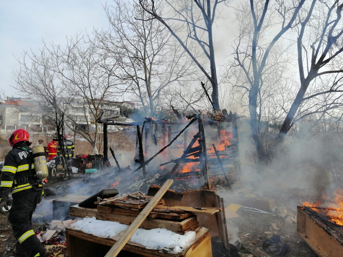 O locuință improvizată a ars în totalitate sâmbătă după-amiaza, la Cluj-Napoca. Locatarul a reușit să iasă din casa în flăcări, dar a ajuns la spital cu arsuri la nivelul feței.