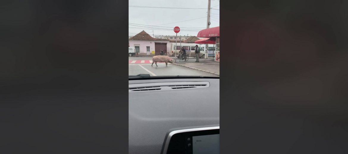 Dacă cu imaginile cu câini care traversează strada mai regulamengtar decât oamenii suntem obișnuiți, un porc trecând pe trecerea de pietoni este mai greu de imaginat.În Gherla, un porc a fost surprins în timp ce traversa regulamentar, pe zebră, o intersecție.