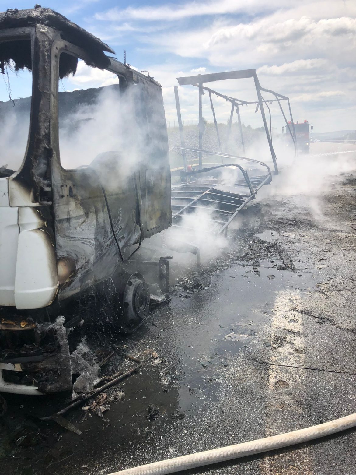 Un TIR încărcat cu polistiren s-a făcut scrum miercuri dimineața, după ce a luat foc pe Autostrada Transilvania. Pompierii din cadrul Detașamentului Turda au intervenit cu două autospeciale și au reușit să stingă flăcările, dar autovehiculul a fost distrus în totalitate.