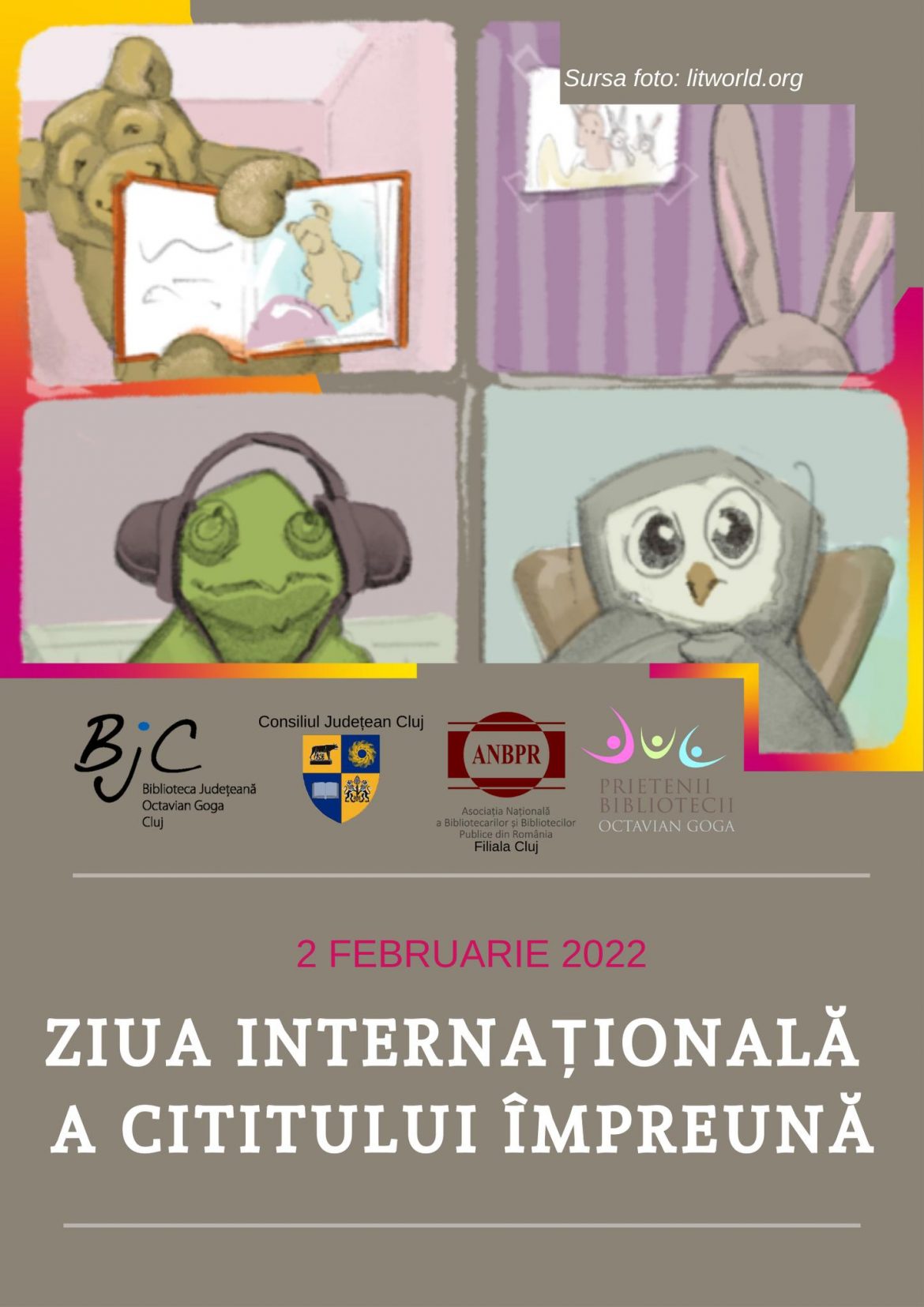 Biblioteca Județeană „Octavian Goga”, instituție de cultură aflată în subordinea Consiliului Județean Cluj, sărbătorește în data de 2 februarie 2022 Ziua Internațională a Cititului Împreună.